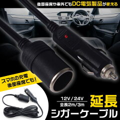 シガーソケット 延長 ケーブル シガープラグ 3m ランプ 車内 DC電源 電装品 12V 24V 兼用 10A 普通車 トラック スマホ充電