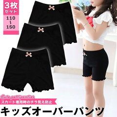 オーバーパンツ アンダーパンツ 女児 キッズ インナーパンツ ガールズ 下着のチラ見え防止 ペチパンツ スパッツ 3分丈 リボン付き 3枚セット 黒