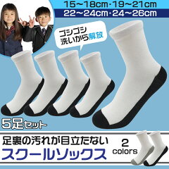 スクールソックス 子供用 通学 靴下 ツートン School Socks 汚れが目立たない靴下 5足セット クルー丈 大きいサイズ追加 (24cm 26cm)