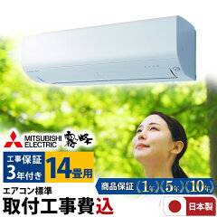 エアコン 14畳 工事費込み 三菱電機(MITSUBISHI)日本製 工事保証3年 GV 霧ヶ峰 ルームエアコン MSZ-GV4024S-W-SET 3モード除湿 STRONG冷房 清潔Vフィルター 冷房 暖房 クーラー 14帖 標準取付 設置 リフォーム 型落