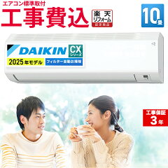 【標準取付工事込】ダイキン(DAIKIN) ルームエアコン CXシリーズ 主に10畳用 2025年モデル 100V 平行型 工事保証3年 フィルター自動お掃除機能搭載 室内機高さ25cm ルームエアコン CXシリーズ S285ATCS-W-SET コンパクトデザイン 冷房 暖房 クーラー 10帖 空気清浄