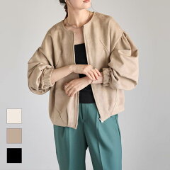 \SALE63%OFF/ブルゾン レディース 春 秋 アウター ぽわん袖 ボリューム袖 ボリュームスリーブ ジップアップ ジャケット カジュアル 体型カバー スエード ジャンバー 長袖 オーバーサイズ