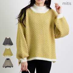 \SALE56%OFF/ニット レディース 秋 冬 ハニカム 配色 ハイネック プルオーバー バイカラー ぽこぽこ ポップコーン 前後差 大人 体型カバー ゆったり 20代 30代 40代 50代