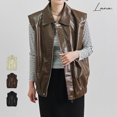 \SALE68%OFF/レザーベスト レディース 襟付き 秋 冬 フロントジップ フェイク 合皮 エコレザー ショルダー ZIP ボタン 大人 体型カバー ゆったり 20代 30代 40代 50代