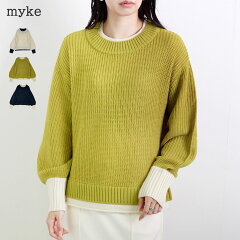 \SALE64%OFF/\SALE64%OFF/ニット レディース 長袖 秋 冬 アクリル バルキー 片畦編み レイヤード プルオーバー 配色 バイカラー ボリューム袖 クルー 大人 20代 30代 40代 50代