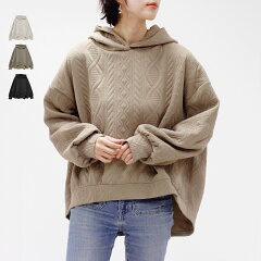 \SALE61%OFF/パーカー レディース 秋 冬 ケーブル ジャガード フード付き プルオーバー 大人 体型カバー ゆったり 20代 30代 40代 50代