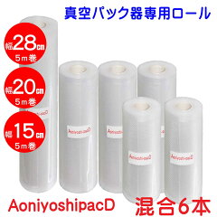 3.【サイズ豊富でお得なセット】AoniyoshipacD 真空パック器ロール 幅28cm1本+幅20cm3+幅15cm2本 全国送料無料 DR5-L1-M3-S2