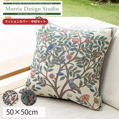 更に一部お値下げしました! 背当クッションカバー (カバー・中材セット) おしゃれ MORRIS (ウィリアムモリス) ケルムスコットツリー 50×50cm 洗える 正方形 ギフト ブランド 高級 リビング ソファ パンヤ 川島織物セルコン 送料無料 LL1722 【生産終了予定】