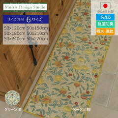 インテリアマット MORRIS ( ウィリアムモリス) キッチンマット フルーツ 6サイズ展開 50×120cm 50×150cm 50×180cm 50×210cm 50×240cm 50×270cm 洗える 抗菌 防臭 吸水 速乾 川島織物セルコン 送料無料 FT1703 【生産終了予定】