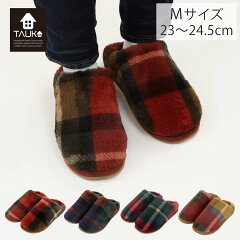 スリッパ TAUKO( タウコ )チェックファースリッパ Mサイズ 23〜24.5cm ルームシューズ かわいい おしゃれ 暖かい やわらかな肌触り 人気 チェック柄 フェイクファー 履きやすい 川島織物セルコン GS6115