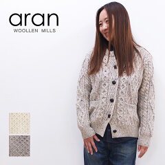 [A] アランウーレンミルズ Aran Woollen Mills 正規輸入品 B339 ニット カーディガン セーター ウール クルーネック フィッシャーマン アランセーター アイルランド製 アランカーディガン