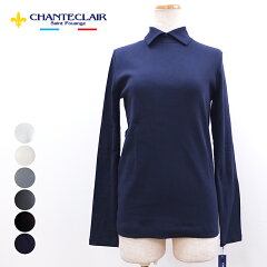 [A] シャントクレール CHANTECLAIR フランス製 フライス 無地 カットソー 長袖 襟付き ポロネック ポロシャツ レディース フランス製大人な無地ポロ衿カットソー