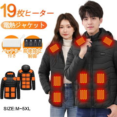 【楽天一位】電熱ジャケット 19枚ヒーター モバイルバッテリー付き 電熱ベスト長袖 フード付き M~5XL ヒータージャケット ヒーターベスト 加熱ベスト長袖 防寒対策 男女兼用 USB バッテリー給電 プレゼント 丸洗い 登山 前後独立制御 防寒着 バイク 急速発熱