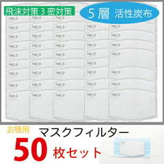 マスク用取り替えフィルター お徳用50枚入り不織布 5層構造 フィルターシート 交換マスクフィルター 黄砂 PM2.5 花粉症対策 飛沫防止 ウイルス対策
