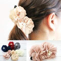 バナナクリップ 大きめ フラワー 花 ビジュ パール