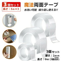 両面テープ 魔法のテープ 超強力 はがせる 大容量 たっぷり9m【3個合計】3個セット 防災対策 ryomen-tape 再利用可能 浮かせる収納 透明多機能ナノテープ 滑り止テープ 家庭 オフィス 学校 工業用 防水 貼り跡残らない 写真ポスター貼付 屋外 DIY文具 極 固定テープ