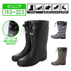 【特価・アウトレット】キッズ レインブーツ ジョッキーブーツ レインシューズ 長靴 雨靴 完全防水 防滑底 マット調 ドローコード フード 巾着付き アウトドア キャンプ ブラック ダークブラウン グレー 迷彩 男の子 女の子 男女兼用 19.0cm 20.0cm 21.0cm kp_18007