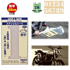 ステンシルシート 数字 駐車場 ステンシルプレート ジョーホクステンシル 20ピース 文字丈約250mm 駐車場 番号に レース ゼッケンナンバー(日本製 ペーパー 紙製文字シート)