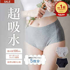 【1000円OFFセール】総合1位 1日安心100ml吸水 吸水ショーツ オーガニックコットン 吸水 サニタリーショーツ 深ばき コットン 綿 生理 尿もれ 生理用ショーツ 吸水型 吸収 ナプキン不要 吸水パンツ 尿漏れ 昼用 夜用 ジュニア 大きいサイズ