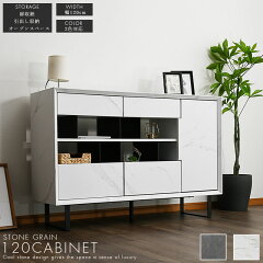 【12/1限定 クーポン配布中1日23:59まで】キャビネット 幅120 完成品 サイドボード リビング収納 石目調 大理石調 おしゃれ モダン 脚付き 引出し 扉収納 グレー ホワイト シェルフ 高さ80 お掃除ロボ対応 リビングボード シンプル インスタ映え 高級感
