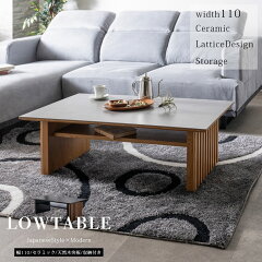 【12/1限定 クーポン配布中1日23:59まで】リビングテーブル 幅110cm ローテーブル センターテーブル セラミック 格子 おしゃれ 和モダン 北欧 北欧モダン ジャパンディ 和風 石目 収納付き 高さ37cm お手入れ簡単 グレー ブラック ブラウン ナチュラル