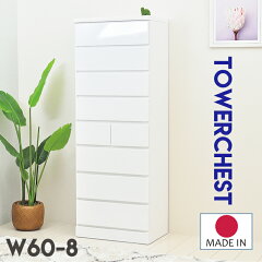 チェスト 白 タワーチェスト 60 完成品 ホワイト 隙間収納 北欧 幅60 高さ162 シンプル カジュアル コンパクト ハイチェスト 8段 白い たんす 日本製 おしゃれ 木製 モダン 引出し 9杯 隙間 収納 家具 エナメル 完成品 光沢 クローゼット収納 洋服たんす