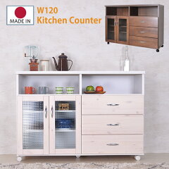 キッチンカウンター 完成品 120 木製 間仕切り 幅120 奥行40 完成品 大川家具 ラック チェスト 引出し キャスター付き 隙間収納 食器棚 カウンターワゴン 北欧 キッチン収納 レンジ台 ワゴン レトロ 国産 ホワイト ブラウン 木目 キッチンワゴン 移動式 カントリー