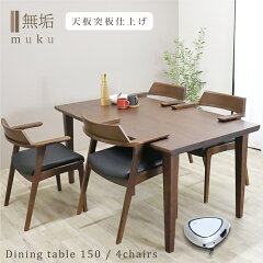 ダイニングテーブルセット 4人掛け 北欧 無垢 おしゃれ お掃除ロボット対応 椅子 アームチェア ダイニングテーブル ウォールナット ダイニングセット 4人 ダイニング テーブルセット 5点 天然木 幅150 北欧 モダン 肘付きチェア
