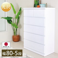 チェスト 5段 白 完成品 80 木製 光沢 おしゃれ ホワイト シンプル コンパクト キッズチェスト クローゼット収納 タンス 白い たんす 80幅 リビング 洋服収納 かわいい カジュアル 国産 全段スライドレール 整理 収納 たんす 1人暮らし ハイタイプ