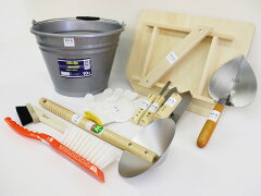 【DIY左官セット】左官道具 コテ板 ひしゃく ブラシ 刷毛 仕上鏝 レンガ鏝 柳刃鏝 平目地鏝 バケツ 軍手 施工道具 工事道具 手動工具