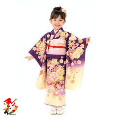 【レンタル】七五三 着物 7歳 フルセット レンタル753 7才女の子 レトロ 往復送料無料 着付動画 着付マニュアル付き 新品足袋プレゼント 7girl-k854 乙葉 紫 鞠 鼓 紅葉 裾グラデーションクリーム