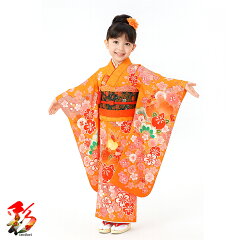 【レンタル】七五三 着物 7歳 フルセット レンタル【7girl-k874 和がまま オレンジ ピンク花 】 753 女児 四つ身 子供 お祝い着 正月 7才 きものレンタル着付けマニュアル付き 新品足袋プレゼント 往復送料無料