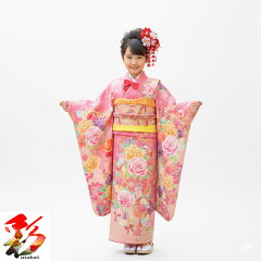 【レンタル】七五三 着物 7歳 フルセット レンタル【7girl-k823 ピンクジュエル しごき黄色 】 七五三 7歳 着物 753 女児 着付けマニュアル付き 新品足袋プレゼント 往復送料無料