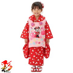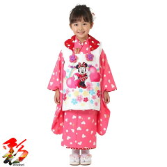 【レンタル】七五三 着物 レンタル 3歳 女の子 被布 着物セット フルセット ひなまつり 正月 前撮り 髪飾り 753 貸衣装 三歳 被布コート 往復送料無料 着付けマニュアル付き 新品足袋プレゼント『Disney 赤ドット ミニー ピンク被布』3girl-hf-370