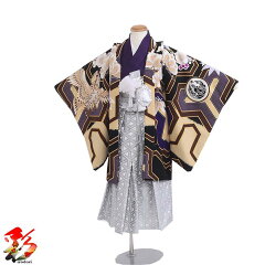 【レンタル】《5歳小さめ 身長100~110cm前後》七五三 5歳 男の子 羽織 袴 着物フルセット レンタル お宮参り 端午の節句 往復送料無料 着付け動画付き 新品足袋プレゼント5boy-k634『JAPAN STYLE 紫 幾何学模様 鷹と丸紋 袴セット』