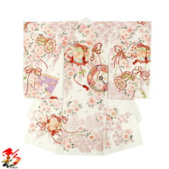 【レンタル】 華徒然 ブランド オフホワイト 女の子 産着 祝い着 5点セット ベビー 赤ちゃん お宮参り 祝着 フルセット セレモニードレス 記念撮影 往復送料無料 着付け説明書付き【華徒然 オフホワイト 桜と小槌 baby-girl-w05】