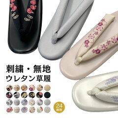 草履 ウレタン草履 刺繍草履 レディース 刺繍 無地 4色 6柄 24パターン Fサイズ Lサイズ ( 履物 履き物 洗える着物 着物 きもの 女性 婦人 椿 七宝 萩小花 小梅 牡丹松 アイボリー ベージュ グレー 黒 抜け防止 成人式 卒業式 礼装 訪問着 袴 振袖 街歩き お稽古 着付け )