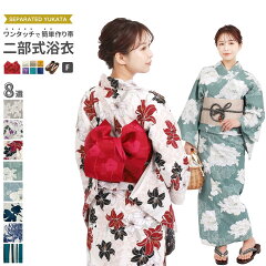 二部式浴衣 ワンタッチ作り帯 下駄 選べる レディース浴衣単品 2点セット 3点セット フリーサイズ x14h | 簡単着付け 花火大会 花火 レディース 女性 綿 綿浴衣 ゆかた 帯浴衣セット セット 大人 大学生 高校生 帯 作り帯