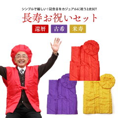 還暦祝い ちゃんちゃんこ + 大黒頭巾 2点セット お祝い 還暦 古希 米寿 長寿 古稀 喜寿 傘寿 卒寿 セット 頭巾 綿入り 長寿お祝い サプライズ パーティー バースデー 誕生日 記念日 慶事 赤 紫 黄 祖父 祖母 父 母 【メール便可/A】