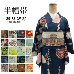 半幅帯 おりびと リバーシブル 織美桐 桐生織 帯 細帯 半巾帯 ブラック ホワイト ベージュ イエロー 仕立て上がり 桐生 椿 風神 雷神 蓮の花 菖蒲 菜の花 恐竜 東京駅 おしゃれ かわいい 可愛い レトロ モダン カジュアル 大正浪漫 小紋