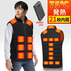 【高温版】電熱ベスト ヒーターベスト 40000mAhバッテリー付き MAX約75℃ ヒーター21枚内蔵 前後独立 3段階調温 速暖 3段調整 USB給電式 DC/USB両用 防寒 男女兼用 軽量 バイク アウトドア 通勤通学 洗える 100日間保証