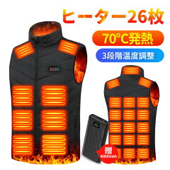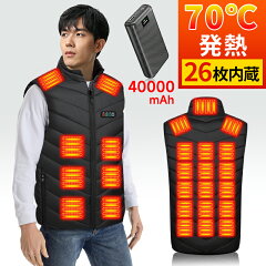 【最新強化版】電熱ベスト 速暖 MAX約70℃ 40000mAhバッテリー付き ヒーターベスト ヒーター26枚内蔵 前後独立 3段階調温 独立温度設定 速暖 USB給電式 DC/USB両用 防寒 軽量 バイク アウトドア 通勤 洗える 100日間保証