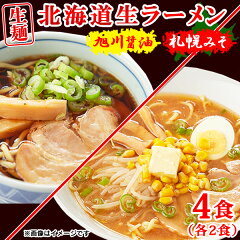 ラーメン 北海道ラーメン 生麺 送料無料 あっさり 食品 お取り寄せ 札幌味噌 旭川醤油 醤油 味噌 4食(各2食)スープ付き 〔メール便出荷〕