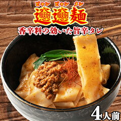 ビャンビャン麺 中華麺 極太 中華 平麺 旨辛 生麺 インスタント 食品 お取り寄せ 送料無料 4食 ソース付き 〔メール便出荷〕