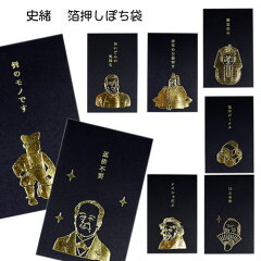 さらに、史緒箔押しぽち袋は、黒を基調としたシックなデザインに、偉人たちのユーモラスな言葉が金箔で施されています。「返済不要」「おいどんの気持ち」といった、思わず二度見してしまうようなユニークなメッセージは、贈る側も受け取る側も笑顔にしてくれるはずです。歴史上の偉人たちが、現代のユーモアと融合した斬新なデザインは、話題になること間違いなしです。