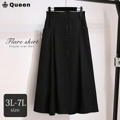 大きいサイズレディース 台形スカート 黒 ボタンつき デザインスカート ウエストゴム 3L 4L 5L 6L 7L 春 秋冬 ブラック