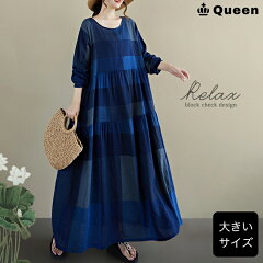 レディース ワンピース 大きいサイズ ロング マキシ丈 チェック ゆったり 体型カバー ナチュラル 長袖 LL 3L 4L 5L 6L 春 秋