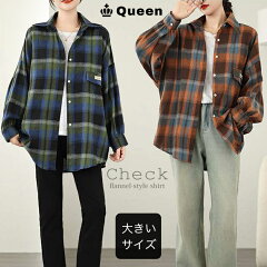 チェック柄シャツ 長袖 大きいサイズ レディース トップス オーバーサイズ 体型カバー 起毛 秋服 冬服 春服 LL 3L 4L 5L 6L