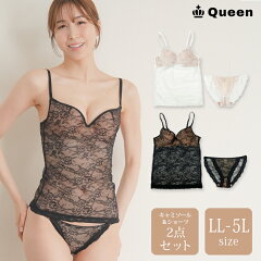カップ付きキャミソール ショーツつき 2点セット 大きいサイズ レディース 下着 ブラキャミ ワイヤー入り レース LL 3L 4L 5L セクシーインナー 夏用