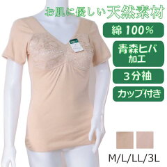 カップ付き肌着 病院 レディース シニア ミセス 肌着 女性 シニア 介護 綿100% シャツ 60代 下着 M L LL 入院 高齢者 インナー 80代 70代 3分袖